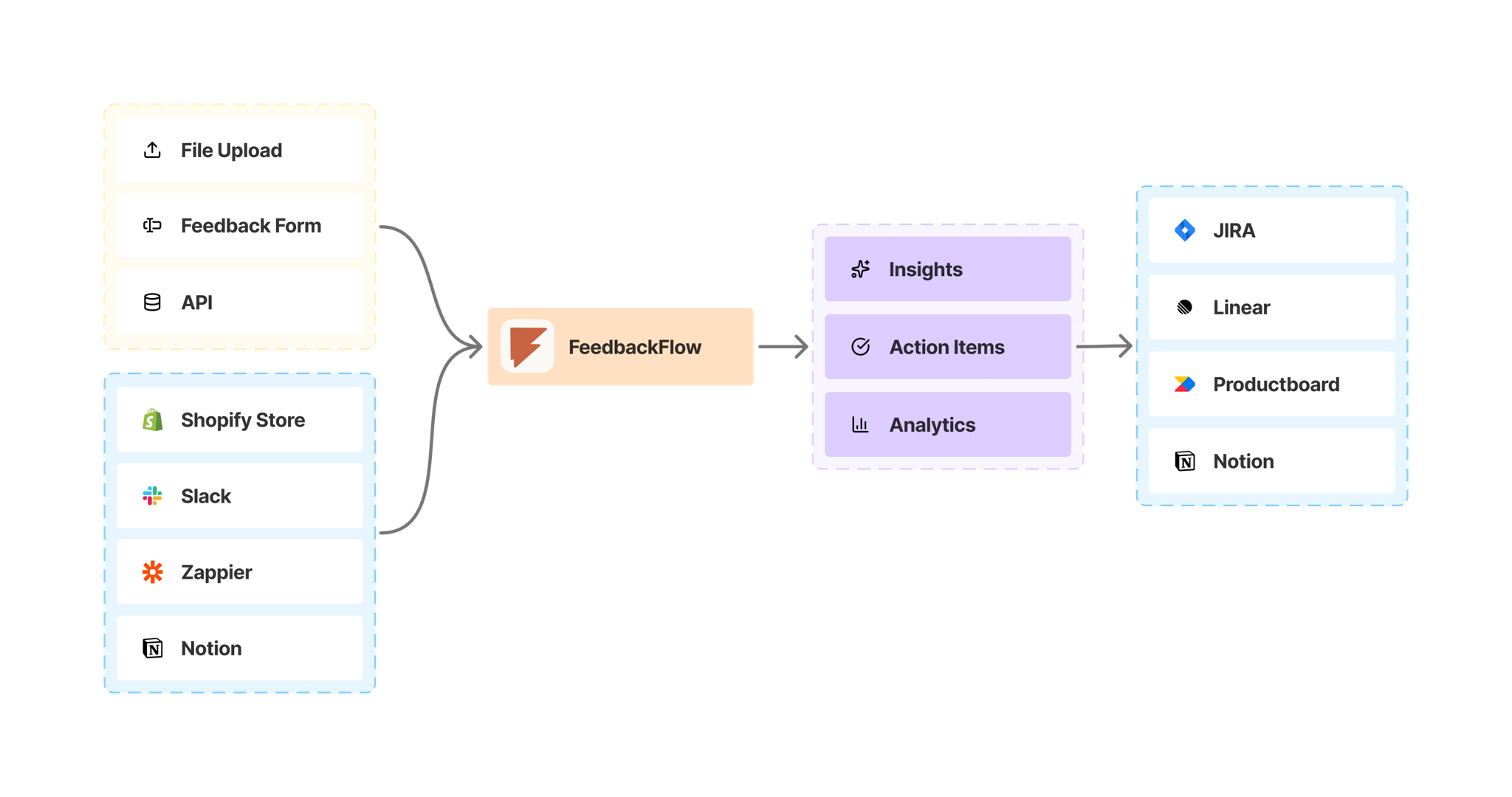 FeedbackFlow makes it easy to collect, analyze, and act on customer feedback. Here's how it works: